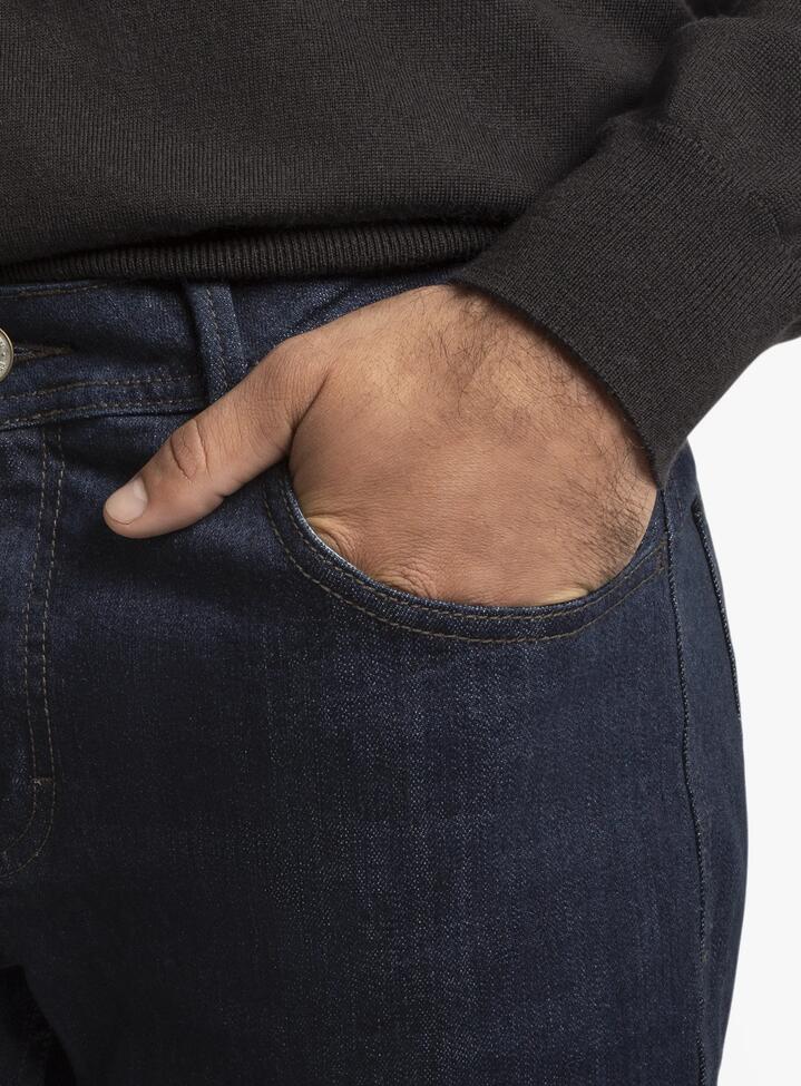Our Indigo Denim Jeans blend classic styling with modern comfort, making them an essential addition to your wardrobe. Crafted from premium stretch denim, these jeans feature a mid-rise waist and a straight-taper leg—comfortable through the thigh with a refined taper from knee to hem. The deep indigo shade offers versatile styling potential, easily transitioning from casual daytime looks to polished evening attire. Stylist Notes Dress these indigo jeans down with a relaxed white tee and sneakers for everyday ease, or elevate them with a button-up shirt and leather boots for a smart evening look. Pair with a crewneck sweater or lightweight blazer to strike the perfect balance between laid-back and refined. The rich indigo hue works effortlessly with both neutral tones and seasonal colours, making these jeans a year-round staple.