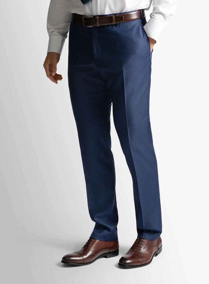 The Dexter tailored pant is designed to complement sartorial combinations and dress up weekend wardrobes. Falling naturally from the waist, the relaxed fit creates a comfortable yet contemporary tailored look that pairs well with neutral palettes and street inspired sartorialism. Although sold separately, the matching jacket and vest are available for purchase as part of the suit ensemble. See suggested products and links below.Wear it with Madrid Blue Sharkskin Jacket (SSRC30) and Cayman Blue Sharkskin Vest (SSRV30) – Sold separately