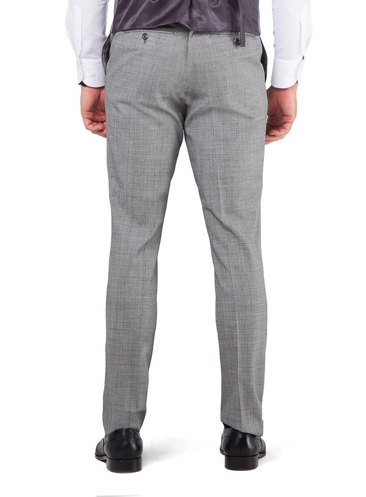 The Dexter Silver Sharkskin Trouser is a great addition for every man’s tailored arsenal. Woven from superfine merino wool and styled with a tailored leg, the subtly textured detail makes for easy pairing with corporate and formal combinations. Wear with a check, stripe and plain shirts and feature with a statement tie for flair. Wear it with; Brad Silver Sharkskin Jacket (SSRC29) and matching vest (SSRV29)