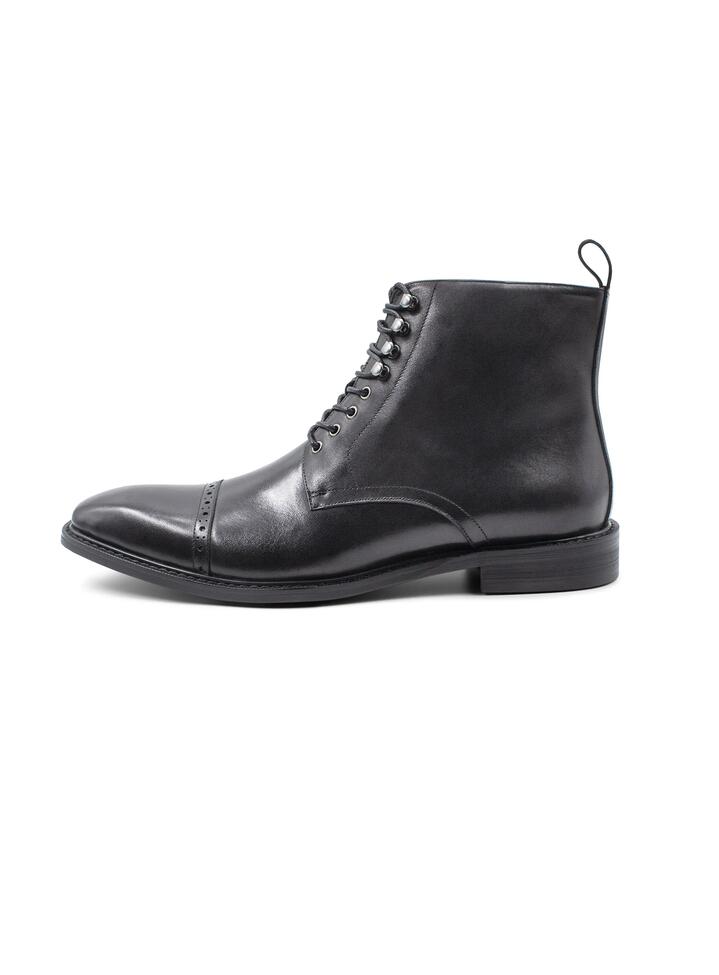 Introducing our Massimo Semi-Brogue Black Boot, a sleek and versatile choice for your footwear rotation. With subtle brogue detailing along the toe cap, these boots offer a touch of sophistication to any ensemble. Crafted from premium black leather, they exude timeless style and durability. Whether you’re dressing up for a formal event or keeping it casual, these boots effortlessly elevate your look. Step out in confidence and style with our Semi Brogue Black Boot, your go-to footwear option for any occasion.