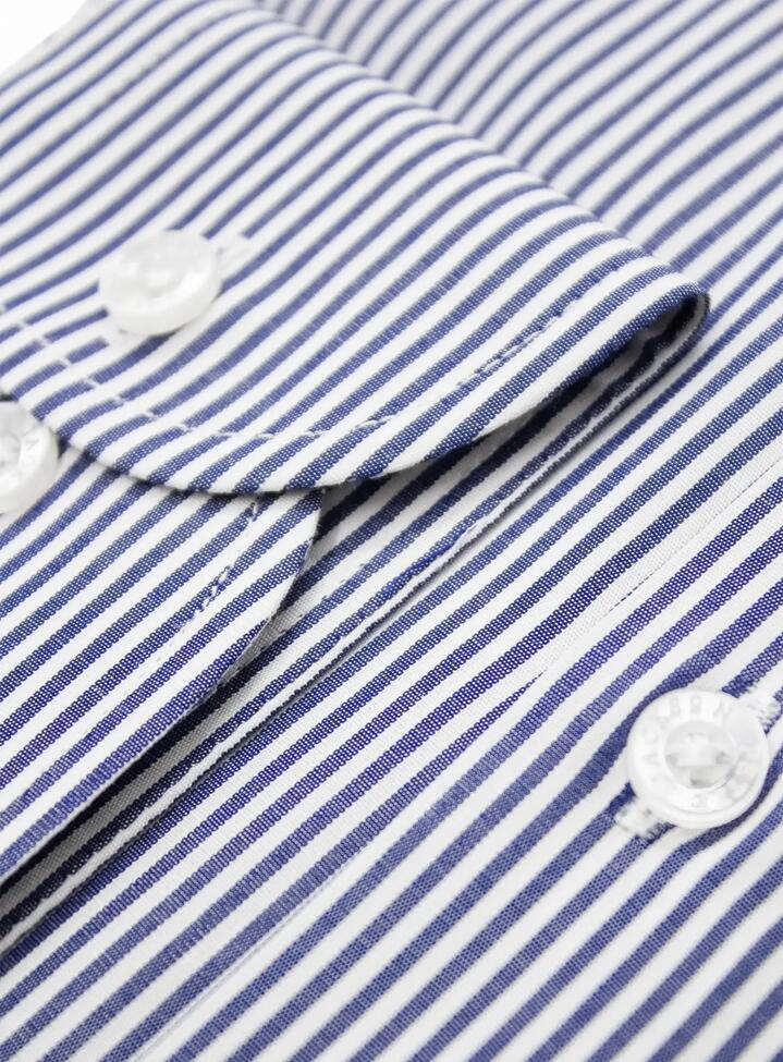 Tailored for a sharp silhouette, the Rivioli Slim Fit Shirt features a refined blue and white mini stripe in a premium stretch cotton blend for all-day comfort. The semi-cutaway collar adds a modern touch, making it ideal for both work and after-hours styling. Pair it with navy or charcoal trousers for a polished office look, or wear it open-collared with chinos and a blazer for effortless sophistication.