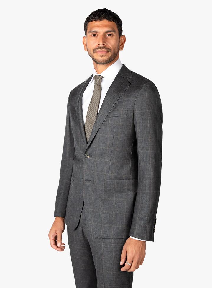 Vasquez Caramel Overcheck Charcoal Suit – Peter Jackson