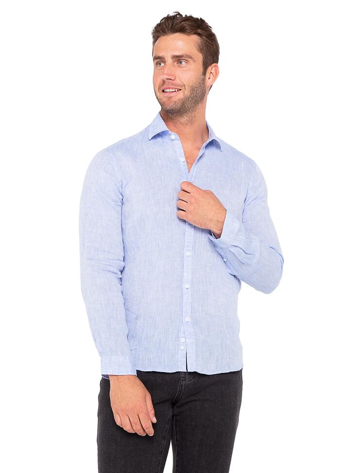 A versatile and stylish addition to any wardrobe. This shirt is made from ultra-lightweight, breathable premium linen. Perfect for warm weather. Featuring a timeless sky blue base with a comfortable yet tailored fit. The linen adds a touch of texture giving it a sophisticated look. Great for casual and formal occasions, the shirt can be easily dressed up or down, making it a must-have versatile item for every wardrobe.